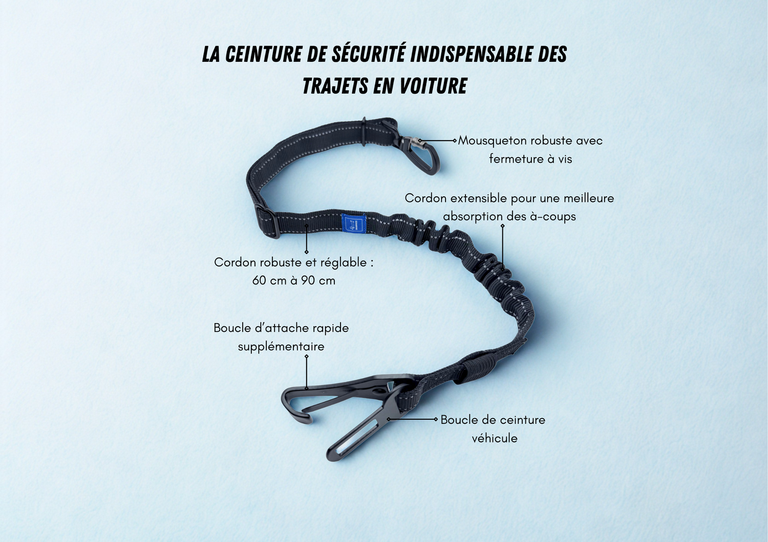 Chez SACAPUCES, nous pensons que la sécurité d'un chien est autant vitale que la nôtre. C’est pourquoi nous proposons une ceinture de sécurité robuste et pratique, qui maintient votre chien en sécurité tout en lui offrant une liberté de mouvement adaptée.