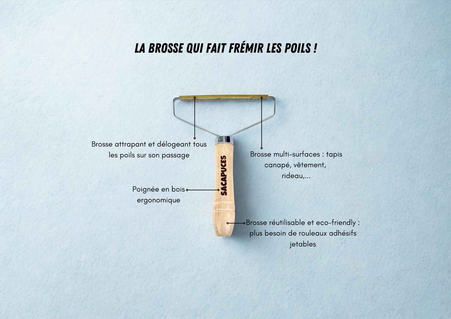 Chez SACAPUCES, nous pensons que vivre avec un chien ne doit pas être synonyme de ménage permanent. C’est pourquoi proposons une brosse clean poils ultra-efficace, qui retire les poils en un clin d’œil, sans effort et sans gaspillage.